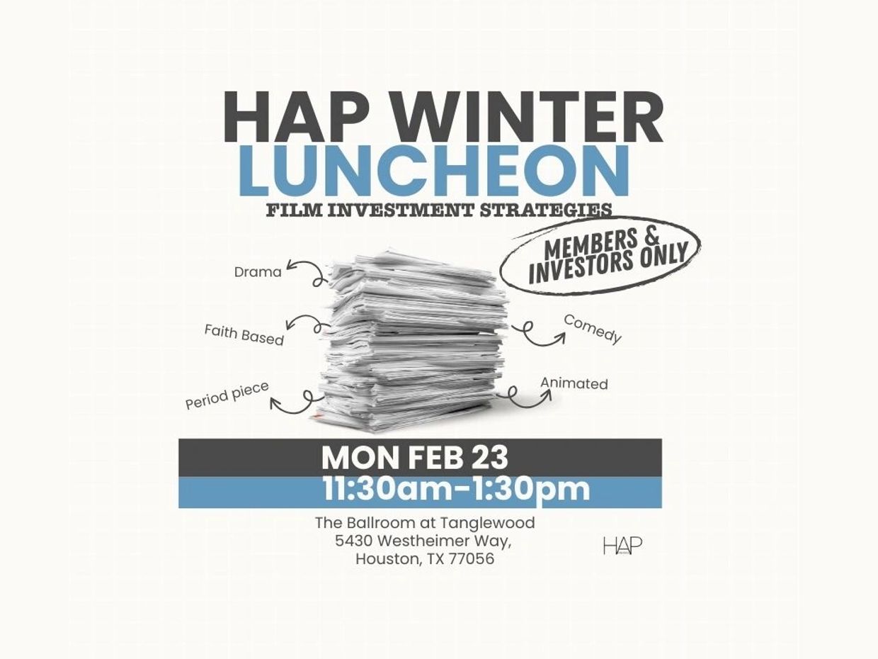 Join us in person for an exclusive Winter Luncheon just for HAP members and investors! This luncheon gathering focuses on accessing the money, offering a unique chance for strategic networking designed to align funding strategies with Houston’s verified producers and industry leaders.